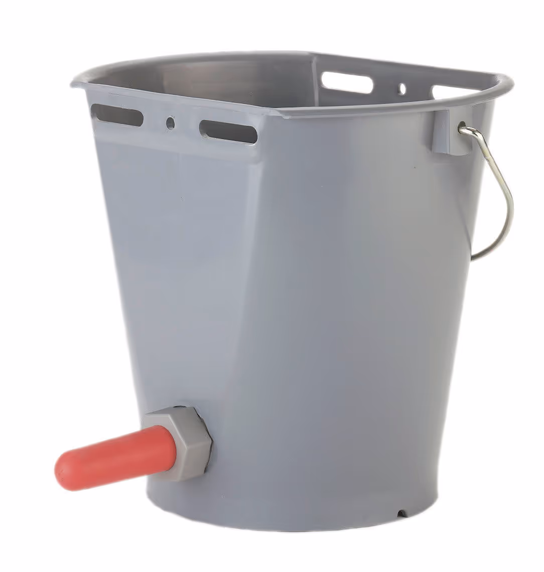 Seaux, tétines et biberons : Découvrez Seau à veau plastique 8L avec clapet et tétine rouge disponible à l'achat