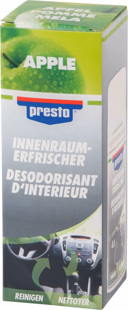 La boîte est simplement placée dans l'habitacle du véhicule. Après activation de la bombe aérosol, le contenu se vide seul. Lorsque la portière est fermée et que le moteur tourne, les ingrédients actifs circulent dans le véhicule.