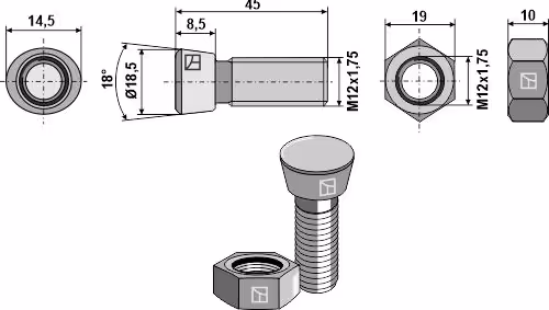 Rabe | Boulon de charrue M12x1,75x45 avec écrou hexagonal AGZ000687441