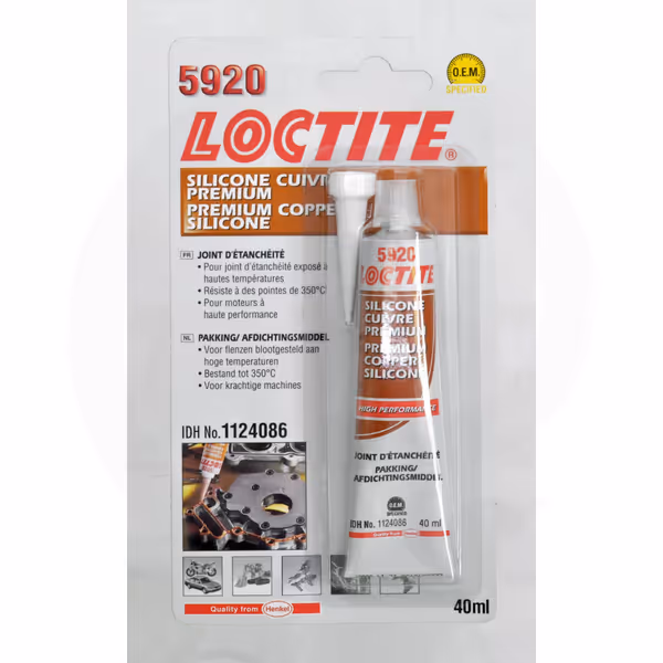 Particularités: - Sans obligation d'étiquetage Avantages: - Ce produit ne contient aucune matière dangereuse pour la santé Domaine d'appplication: - Pour l'étanchéification de pièces métalliques et en plastique, par exemple sur les carters d'huile, les couvercles de carter, les cache-soupapes, les carters de transmission, les pompes à eau, les couvercles de chaînes de distribution, les thermostats, les systèmes de refroidissement, les couvercles de transmission et les collecteurs d'admission, qui sont exposés à des températures élevées - Étanchéité des plans de joints Caractéristiques: - Flexible - Viscosité : pâteux, silicone - Inodore - Non corrosif - Jeu interface maxi : 1 mm - Résistance : faible - Résistance à la traction et au cisaillement : 1,9 N/mm² - Durée de formation d'une pellicule : 40 min Plage de température (°C)-60 <-> +350