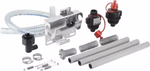 Composition1. plaque support IBC pour pompe manuelle2. connecteur 2" BSP - 1" BSP3. connecteur 56x4 - 1" BSP4. kit aspiration5. Tuyau PVC transparent Ø19mm 1,1m6. Porte-tuyau 90° aspiration pompe manuelle7. kit vis+ bride flexible+ kit raccord coudé 3/4" plastique