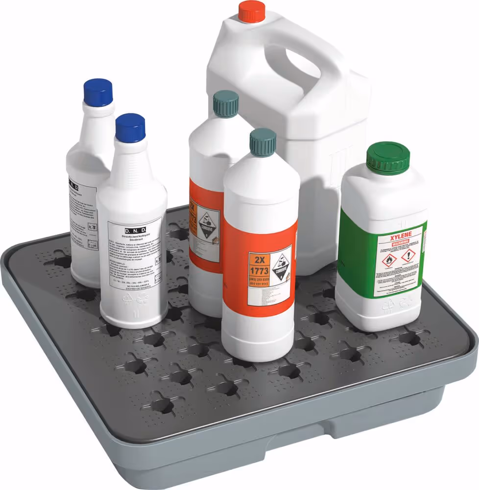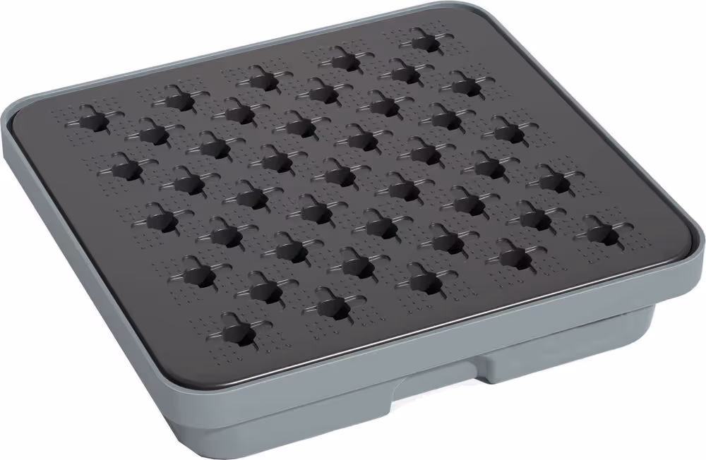 Plateau 100% PEHD avec caillebotis amovible en PP avec surface anti-dérapante.