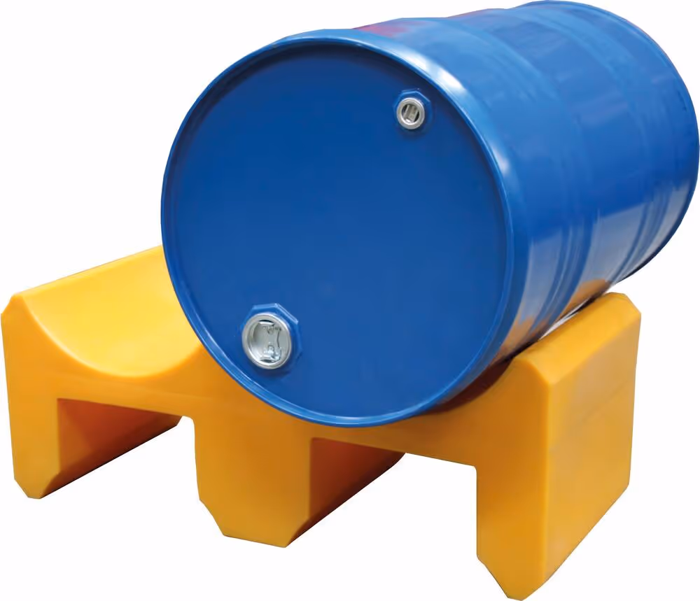 Support jaune permettant le positionnement de 2 fûts de 60L.