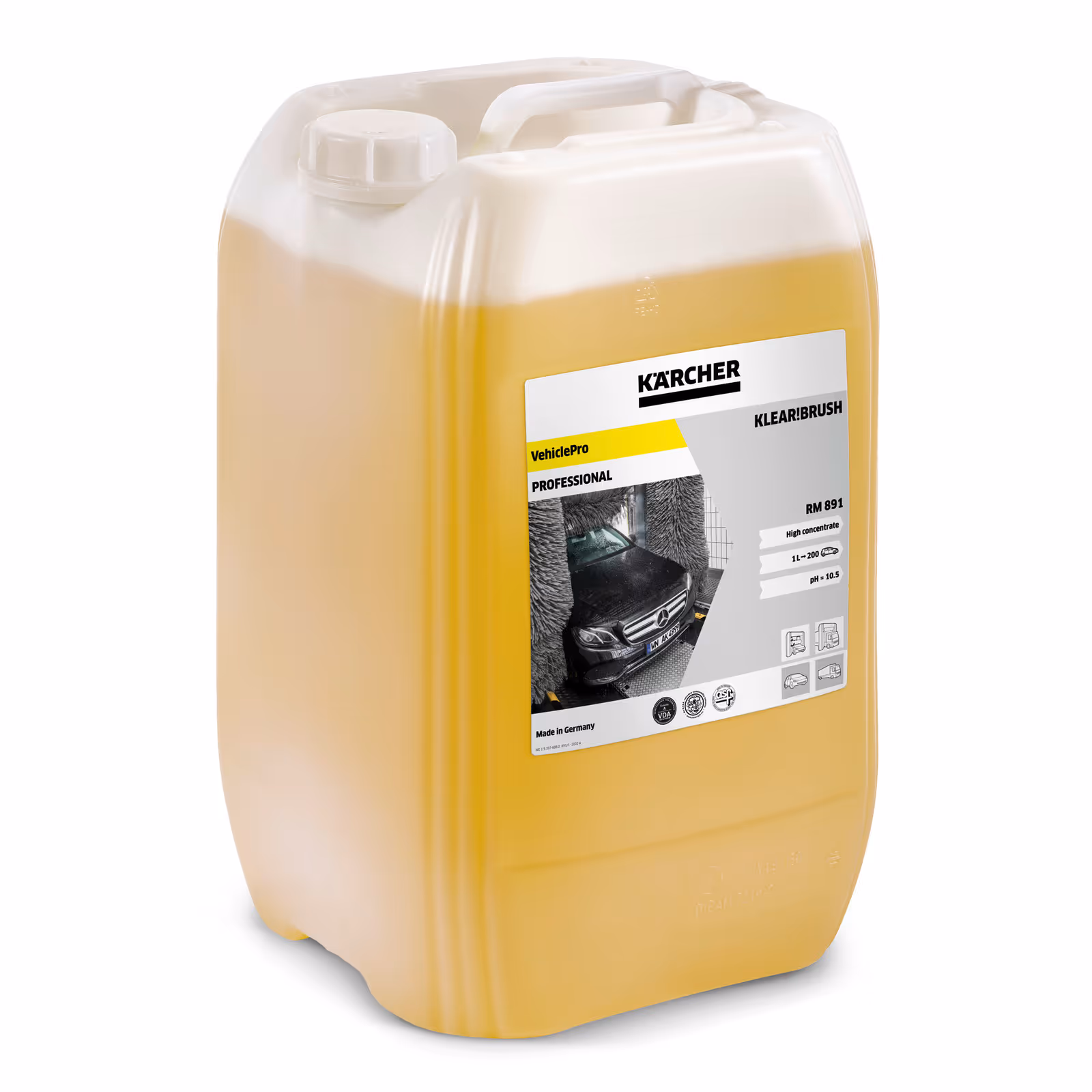 Brosse Klear!RM 891 de VehiclePro : Pour un nettoyage intensif qui ménage la peinture, aide les brosses à s'auto-nettoyer et prolonge leur durée de vie. Accélère le séchage et est conforme à la norme VDA.