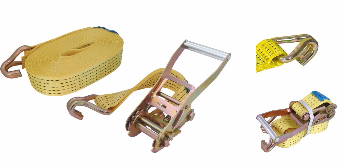 Sangle - élingue : Découvrez Sangle Arrim'up avec cliquet et crochet doigts soudés 50mm 12m 4t Origine disponible à l'achat