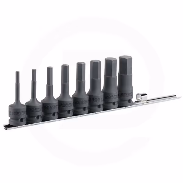 Jeu de 8 douilles tournevis 1/2" pour vis 6 pans creux.