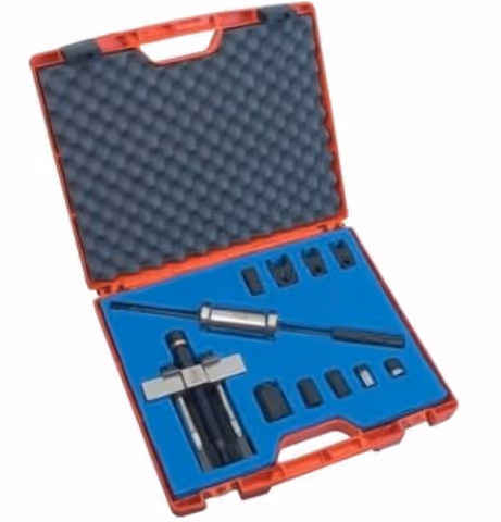 Il s'agit d'un coffret d'extraction d'injecteur comportant 12 pièces. Ce coffret regroupe tous les outils nécessaires à l'extraction rapide des injecteurs grippés.