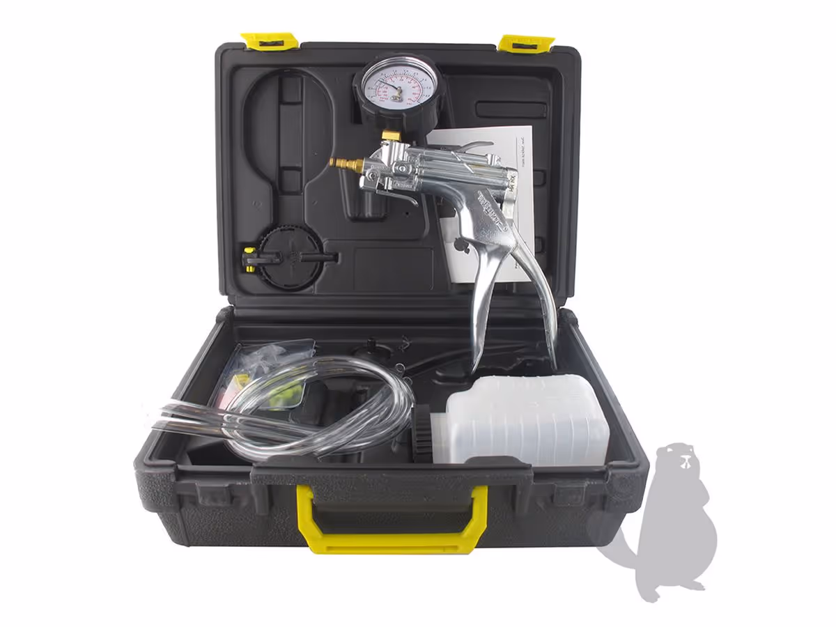 Pompe manuelle métal à pression et dépression. Modèle professionnel pour usage motoculture et automobile. Fournie dans un coffret avec accessoires. C5523Pompe manuelle à pression et dépression en métal.