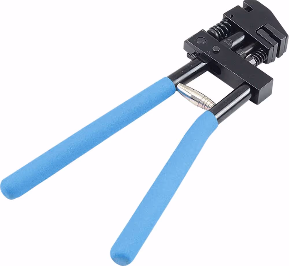 Pince équipée d'une tête pivotante pour poinçonner (Ø 5mm) et plier les tôles avant soudure.