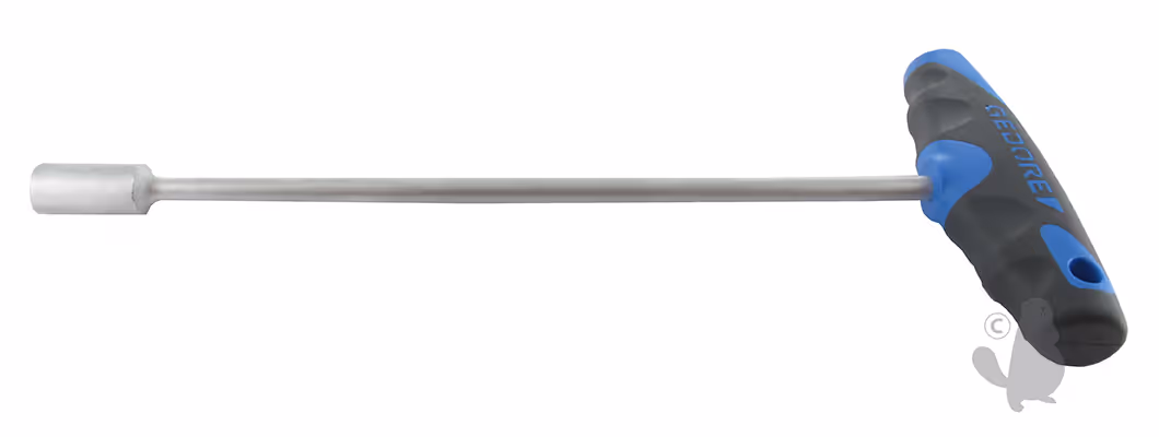 Clé à douille GEDORE 13mm avec poignée en T bi-composants et longueur de lame de 230mm.Clé à douille avec poignée bi-composants en T et trou d'accrochage.