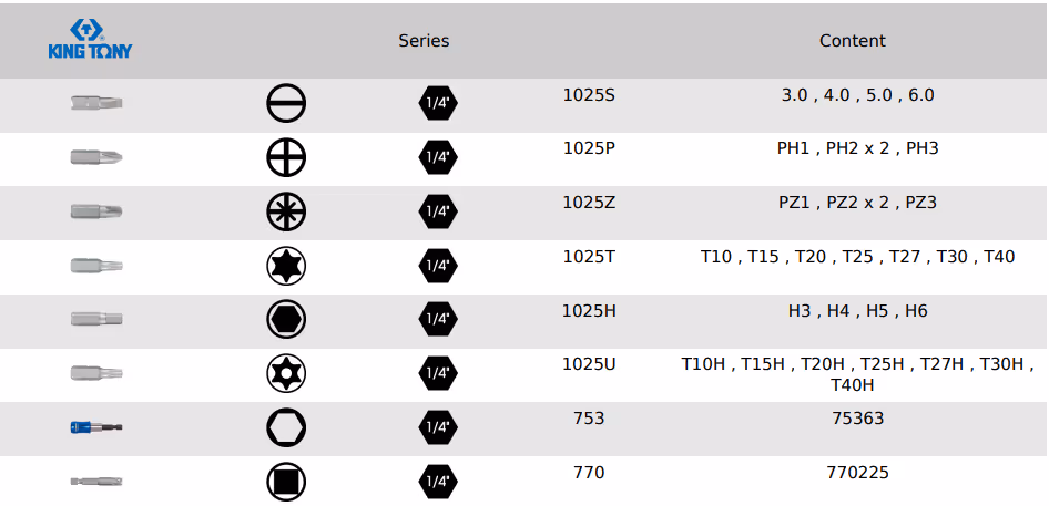 - Embouts tournevis 1/4"