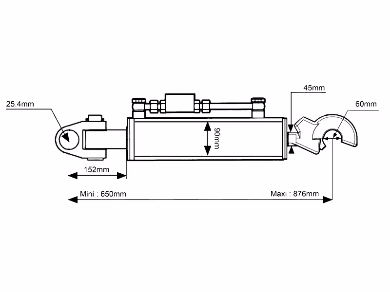 Barres de poussée hydraulique : Découvrez Barre de poussée hydraulique Cat.2/3 L650-876 mm disponible à l'achat