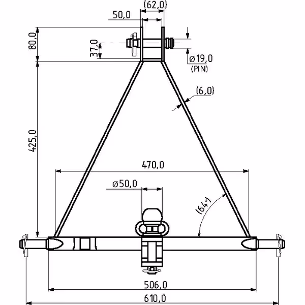 Triangle attelage 3e point Cat1 avec rotule K50