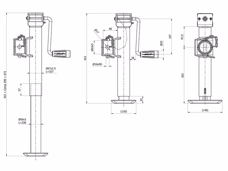Béquille de remorque (Poignée latérale) 1300Kg AGZ000859077