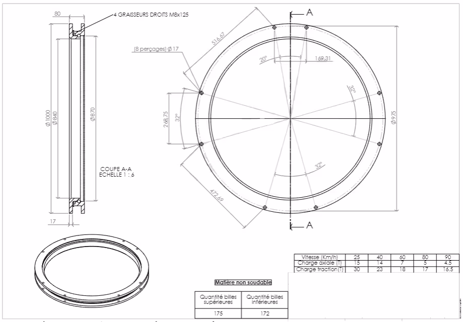 Pièces de chassis : Découvrez Table pivotante train avant 2 rangées de billes 15T Ø1000 mm adaptable disponible à l'achat