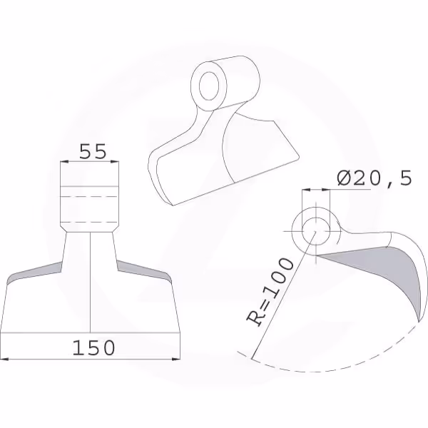 - Radius Ž : 100 mm