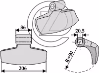 Rayon:90 Largeur de travail:206 Côte de montage:86 Alésage:20,5