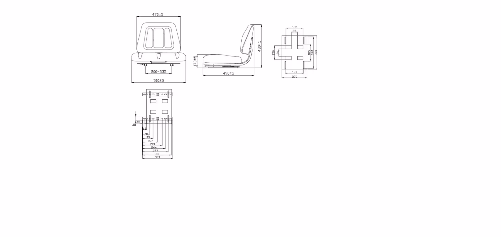 Siège PVC sans suspension Larg. 510 mm adaptable