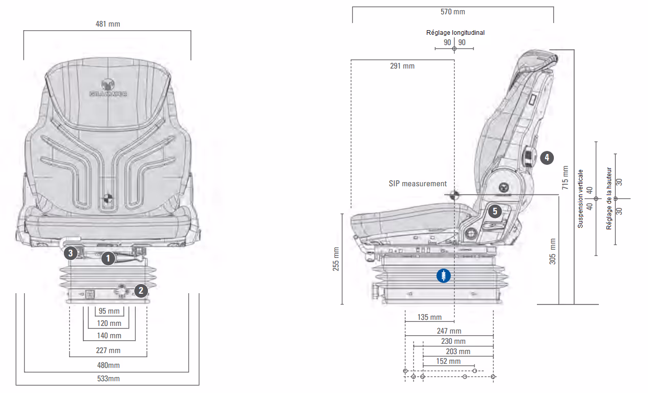 Siège tracteur : Découvrez Siege tracteur Compacto Basic W Grammer MSG83/721 disponible à l'achat