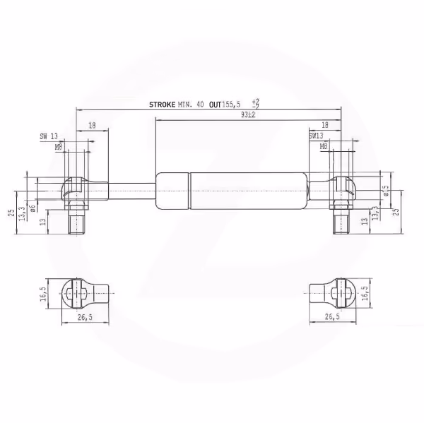 Vérin à gaz L155,5-50N AGZ000037627
