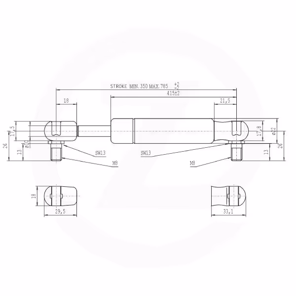 Vérin à gaz L785-1150N AGZ000037573