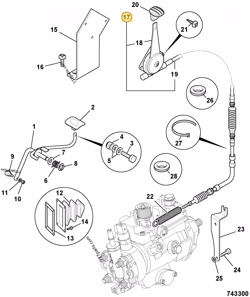 CABLE ACCELERATEUR COMPLET JCB REF 910/60236 (équivalent à 334/E6422) AGZ000844966