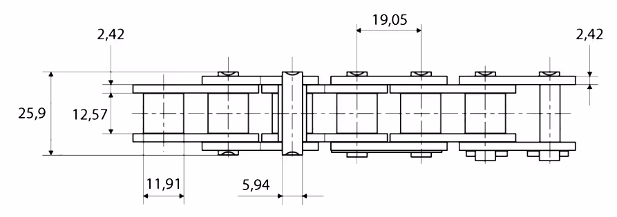 - Largeur int. maillon (b1) : 12.57 mm