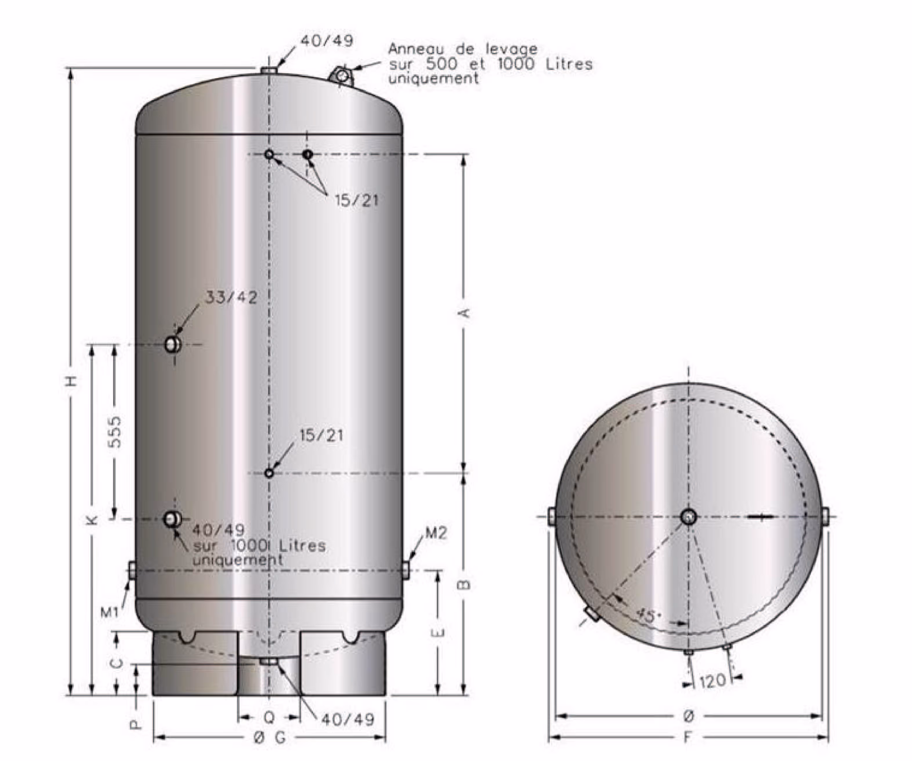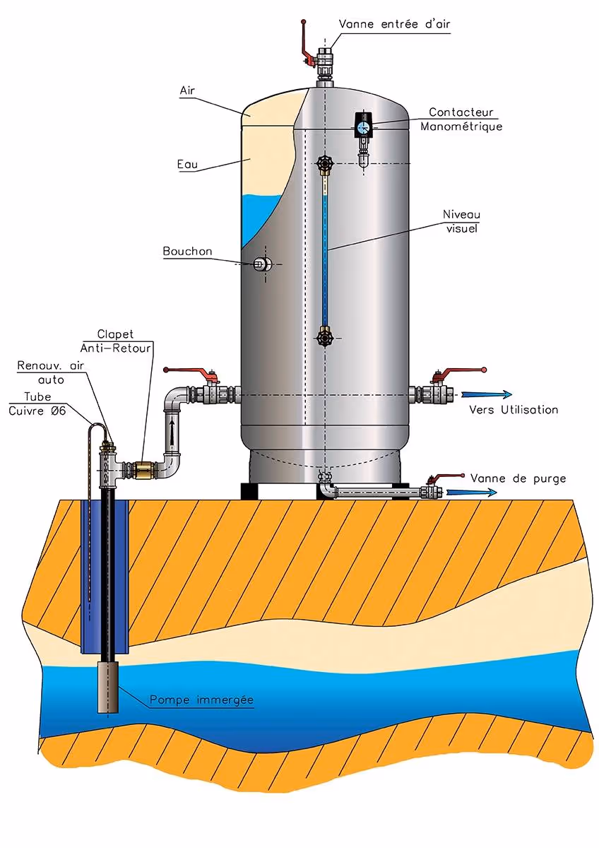 Voir les produits associésA quoi ça sert ? Notre réservoir de haute qualité est utilisé pour mettre de l'eau en pression. Il est galvanisé par traitement anti-corrosion à l'extérieur pour une longévité accrue. Son revêtement intérieur plastifié vous offre une protection efficace, par exemple dans des installations avec traitement deau. Il est utilisé pour un travail dans des environnements agressifs et intensifs tels que des installations d'élevage et procédés industriels dans des usines. Avantages : - Plastification à lintérieur du réservoir : Le revêtement en plastique à lintérieur du réservoir permet une meilleure protection du ballon. - Fiabilité et durabilité : Grâce à sa conception éprouvée et à sa galvanisation externe, ce réservoir offre une protection contre la corrosion, assurant ainsi une durée de vie prolongée et une performance fiable. - Installation pratique : Divers orifices permettant de multiples entrées / sorties - Certification ACS (Attestation de Conformité Sanitaire) Cadre dutilisation : - Température admissible : de 0 à 49 °C - Pression Mini/Maxi admissible : 0/4 Bar - Type de fluide : air + eau (Groupe 2) N'oubliez pas de commander le kit de mise en uvre (code 980146) pour installer votre réservoir (kit composé d'une valve de gonflage, d'un bouchon, d'un pressostat et d'un manomètre).« Attention, la marchandise que vous commandez est volumineuse et/ou lourde. Il vous est nécessaire de prévoir le matériel pour le déchargement du camion. Ni le chauffeur, ni Agrizone ne sont responsable du déchargement. En cas dimpossibilité de livraison, les frais de transport et de retour de la marchandise seront déduits de votre remboursement »