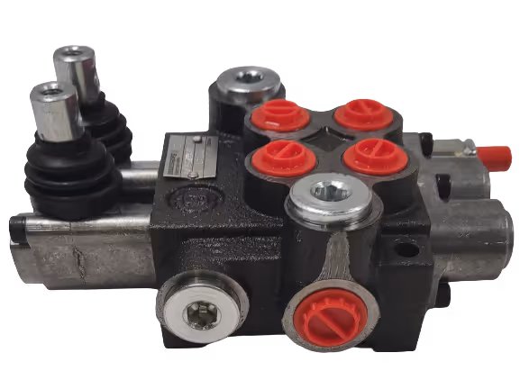 distributeur monobloc 2 fonction double effet cranté, débit maximum = 40L/min, pression maximum = 250 bars.