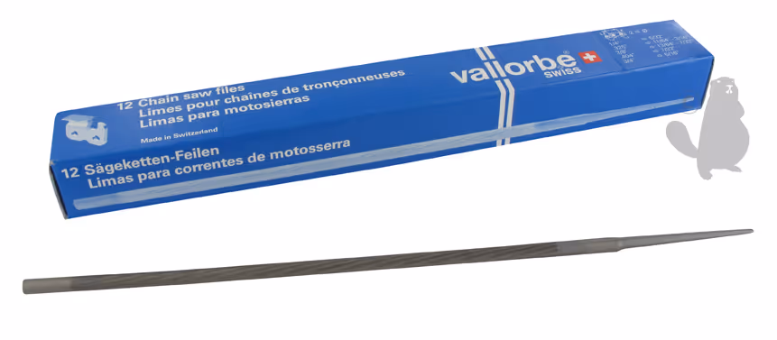 Limes ronde VALLORBE pour chaîne de tronçonneuse. Ø: 5,5mm (7/32"), L: 20cm (8"). Conditionnement par 12.BOITE DE 12 LIMES.