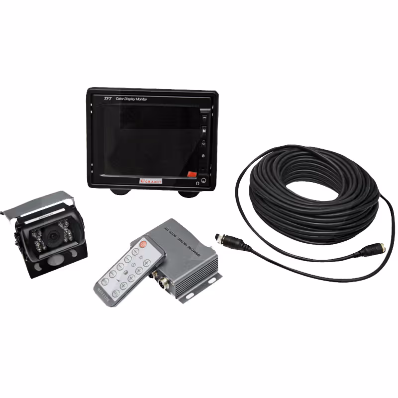Facilite la marche arrière en toute sécurité.Pour une utilisation au quotidien, là où le champ visuel est restreint.Convient particulièrement pour camions et machines agricoles.Système couleur LCD - écran couleur- caméra C 100 S- boîte de connexion- câble 20 m- jeu de câbles pour écranMoniteur- moniteur AU TFT LCD- tension 12 V- 2 entrées caméra (NTSC/PAL)- commande à distance et menu OSD- haut-parleurs intégrés- supportCaméra- CMOS 1/3" couleur- nombre de pixels 512 x 582- jour/nuit entièrement automatique- température de fonctionnement -20 ~ +75°C- sortie TV (NTSC/PAL)- angle de vue 92°