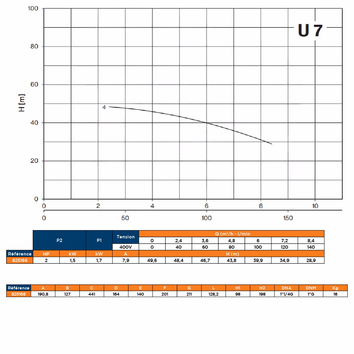 - Débit max : 8,4 m3/h - 140 l/min
