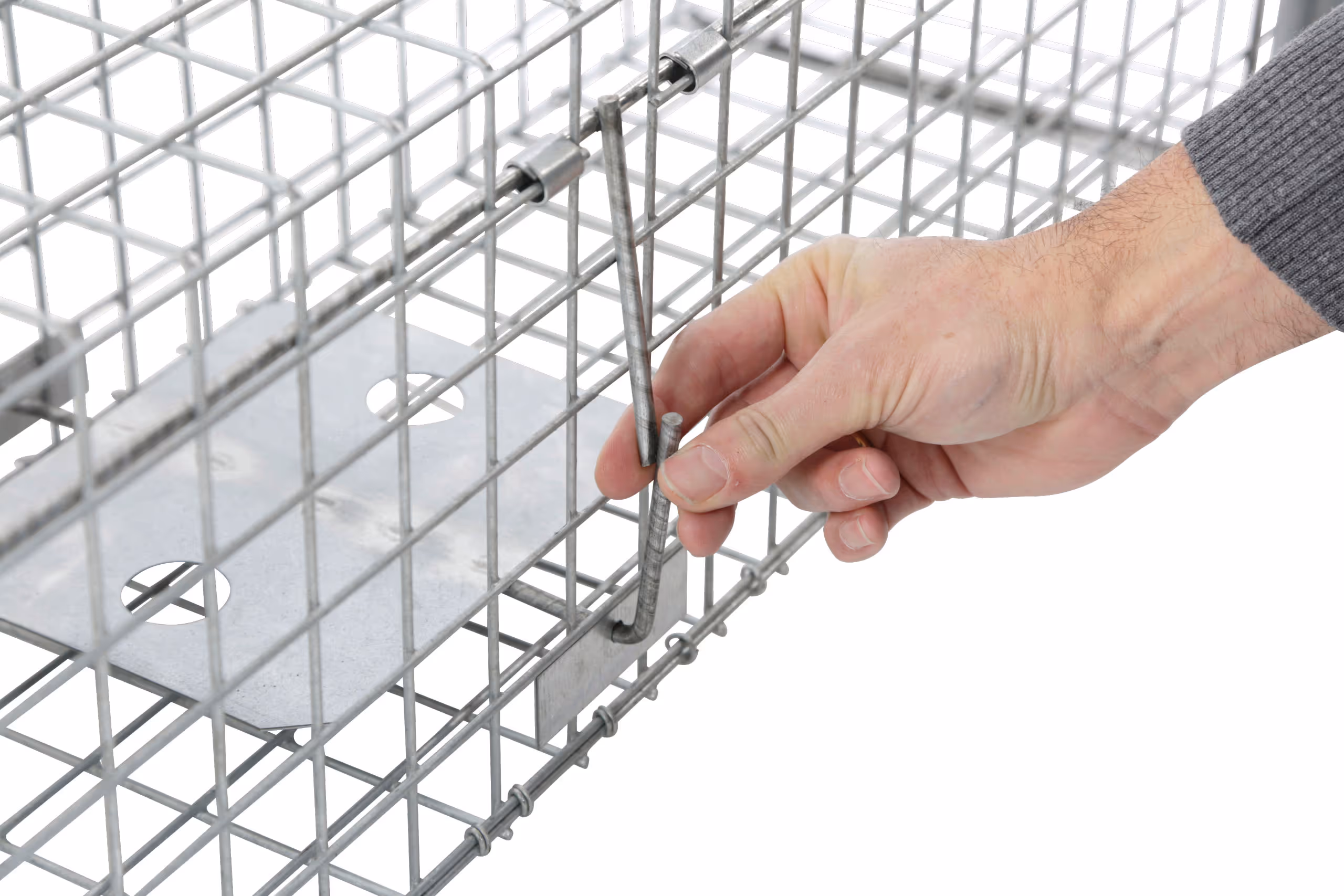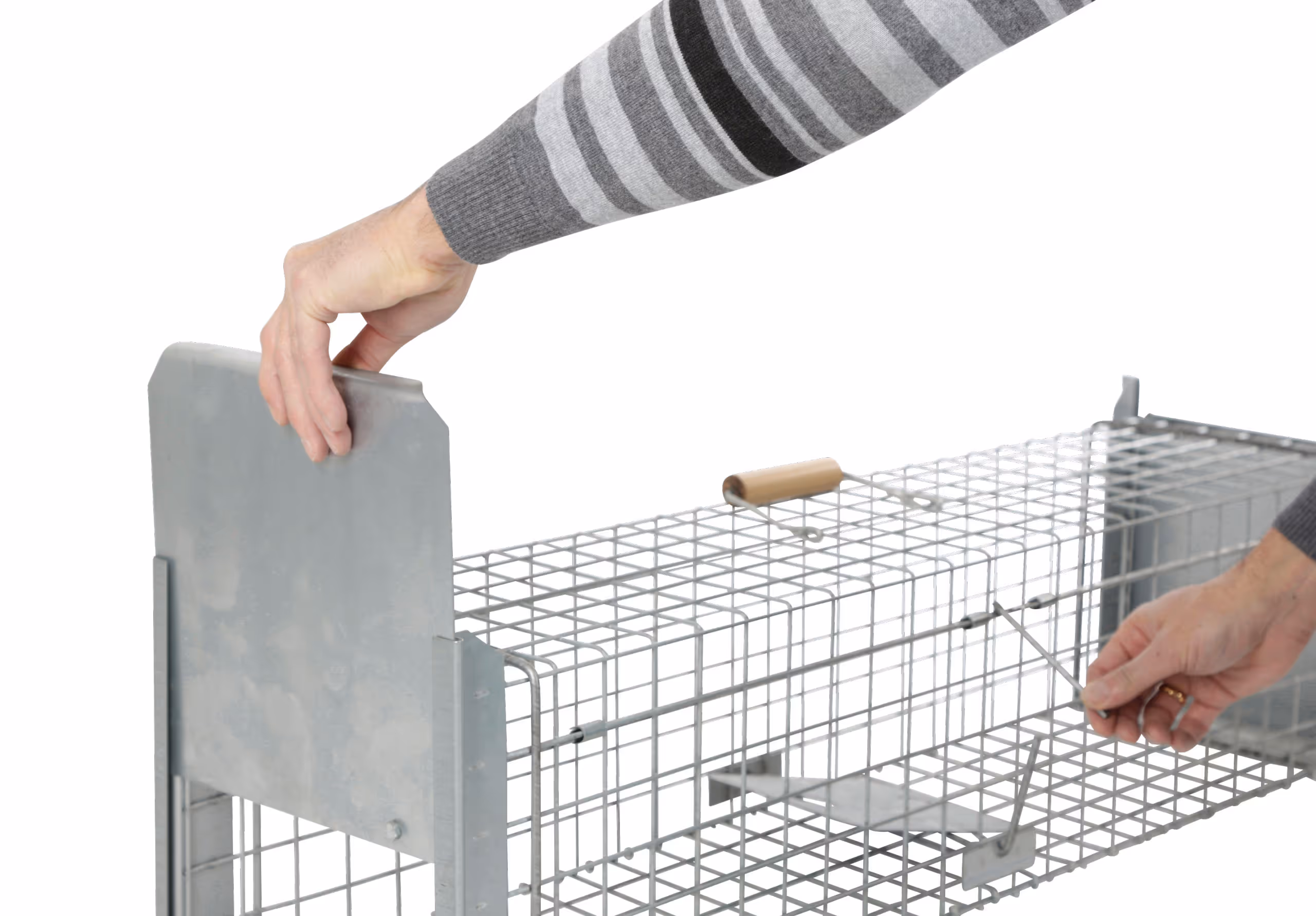 Ce piège à animaux avec porte à clapet à deux battants ou à guillotine est idéal pour attraper, en toute sécurité et sans danger, les renards, chats errants, ratons laveurs, mustélidés et autres animaux. Grâce au treillis de fil métallique solide, vous voyez directement votre piège sans mettre l'animal capturé ni vous-même en danger. Protégez votre maison et votre jardin tout en respectant la faune !