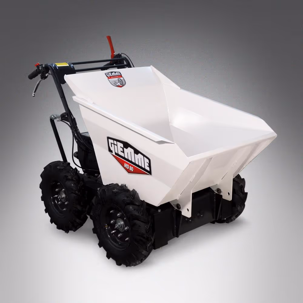 La brouette à roues, mini-transporteur GIEMME MACHINERY modèle MD 80 : une machine qui répond à tous les besoins de transport. Ce transporteur est idéal pour charger tout type de matériaux, tels que le bois, les résidus d'élagage et les déchets de jardinage ou tout type de fruits ou légumes. Outre l'agriculture, le MD 80 est également parfait pour transporter des matériaux de construction et tout type de déchets.