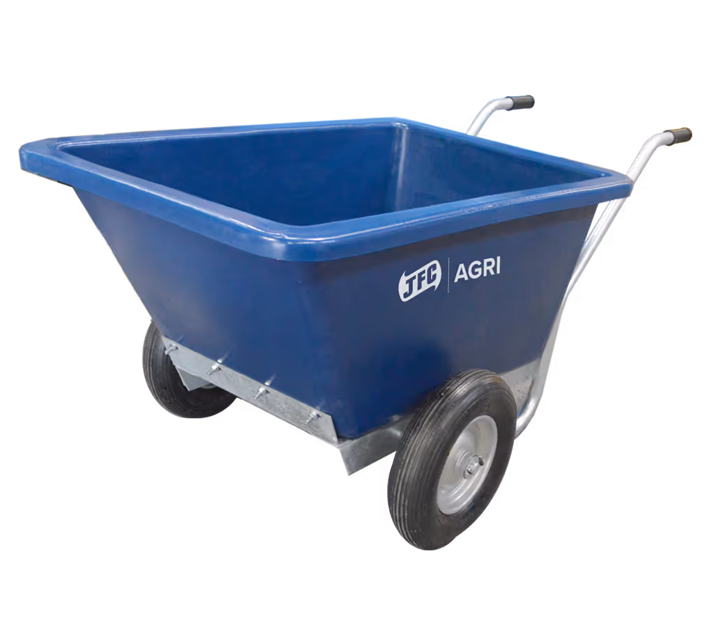 La Brouette Fixe JFC (TWBG-1) est parfaite pour une utilisation à la ferme, dans la cour et pour les tâches générales. Le corps de grande capacité est fabriqué en polyéthylène résistant aux chocs et aux rayons U.V., ce qui en fait une brouette idéale pour transporter de grandes charges tout en réduisant la pression exercée sur l'utilisateur. La TWBG-1 est équipée d'un châssis en métal galvanisé et de roues pneumatiques à roulement à rouleaux pour offrir une maniabilité supérieure et une manutention en douceur, ce qui la rend étonnamment légère à l'usage.