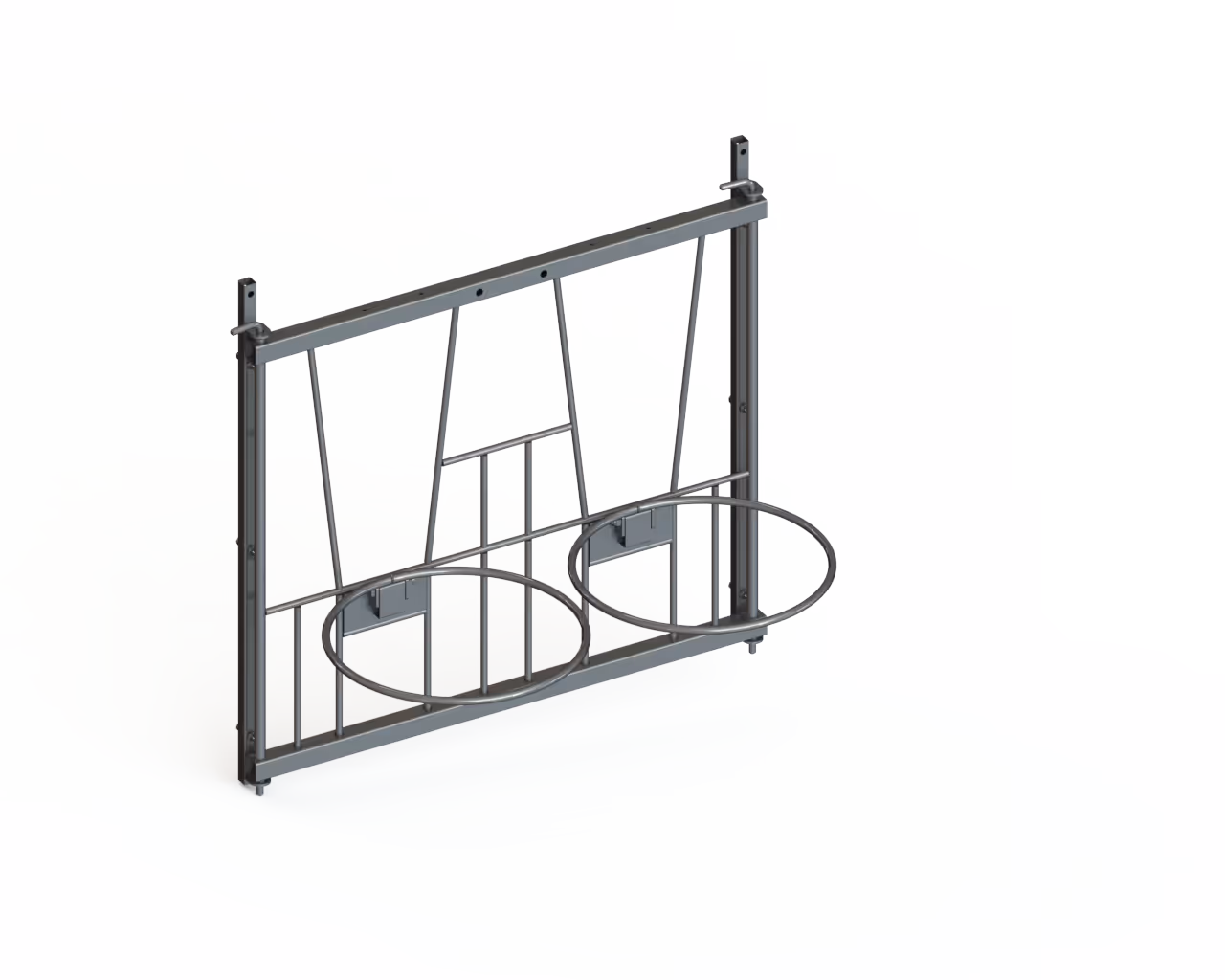 La façade pour niche à veau tiny est équipée de 2 porte seau Ø 340 mm et est livrée avec la boulonnerie necessaire à la fixtion