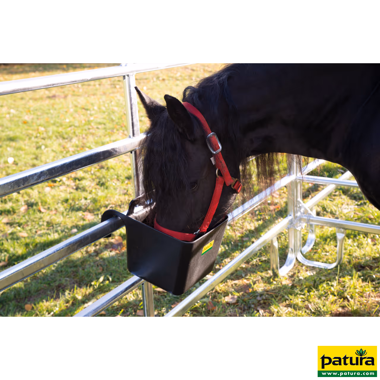 Les mangeoires amovibles en plastique sont disponibles en deux tailles et conviennent à différentes utilisations : en déplacement, dans l'écurie ou au paddock. Avec une capacité de 11 litres et des dimensions compactes, la petite mangeoire est idéale pour les déplacements. Le grand modèle de 40 cm x 44 cm peut contenir un volume de 30 litres. Les deux mangeoires peuvent être suspendues sur des cloisons ou des tubes d'une épaisseur ou d'un diamètre maximal de 60 mm, grâce à des crochets en plastique solides. Elles s'empilent facilement et se rangent sans perte de place.