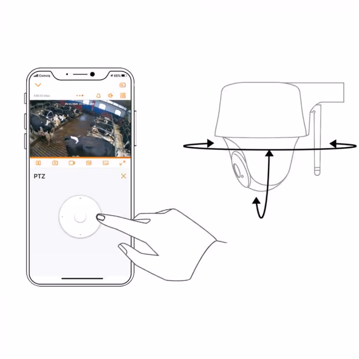 Grâce au Wifi prenez le contrôle de la caméra et visualiser les images sur PC, Smartphone, MAC à l’aide de l’application « FarCam 2.0 ». Plusieurs utilisateurs peuvent installer l’application sur leur smartphone et regarder/enregistrer une vidéo en direct ou lire des vidéos précédemment enregistrées. La caméra peut pivoter de 355° horizontalement et 140° verticalement grâce à son moteur.