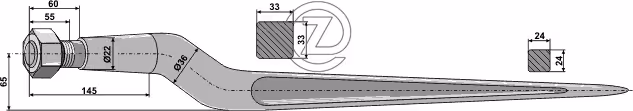 Dent de chargeur Kverneland avec écrou conique 221175 Adaptable