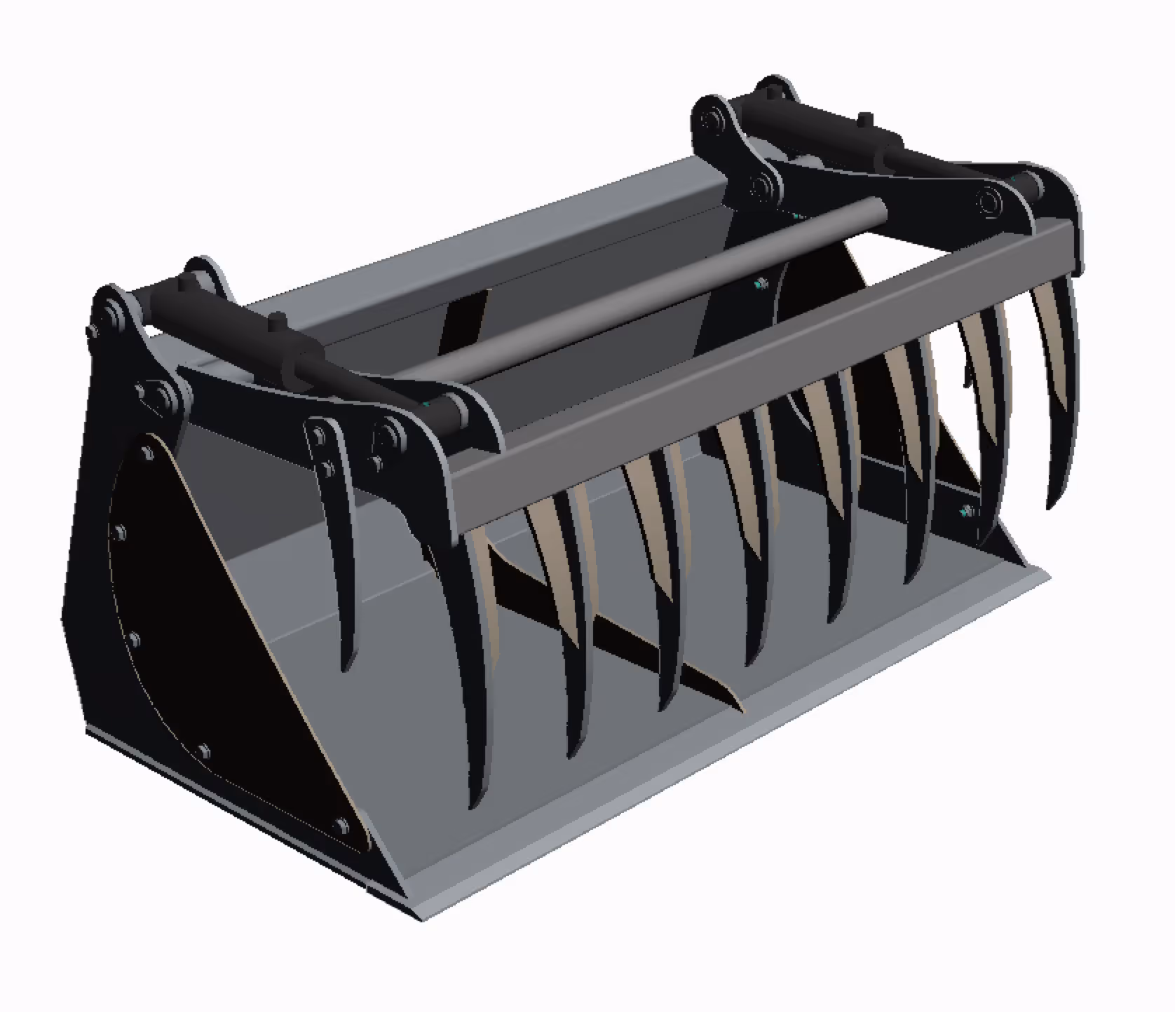 Grâce à sa robuste griffe à dents oxycoupées renforcées, la benne à grappin maintient solidement les matériaux pendant le transport.