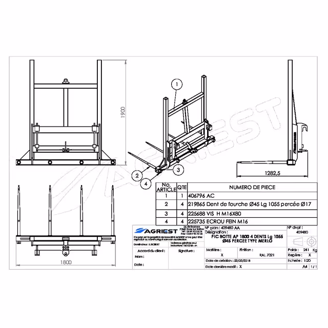 Pic botte ap 1800 4 dents ø45 lg 1055 percee merlo AGZ000615958