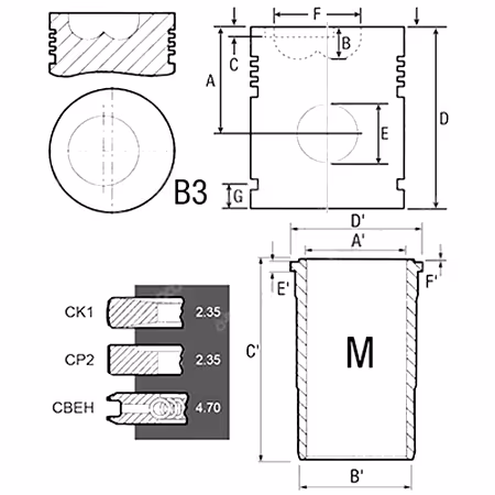 - Alésage de la chemise A': 98.42 mm