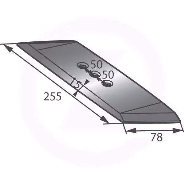 Le Pointe charrue 010104M Goizin - Droite qui est une Pièce d'origine à pour mesures : 78 mm de large pour 255 mm de long.