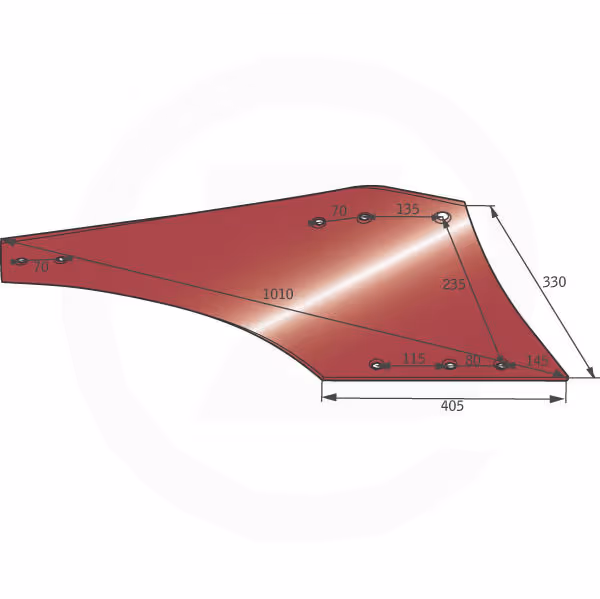 Parmi notre gamme de pièces de charrue, il y a le Versoir droit - 031169D - Naud qui est un modèle Hélicoïdal. Au niveau des propriétés, sa longueur est de 1010 mm, sa largeur de 330 mm et ses affectations sont Naud H54A.