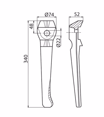 Dent de herse rotative Lely droite 1169901120 Adaptable