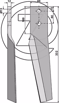Épaisseur:12 Longueur:332 Entraxe:44 Largeur:60 Alésage:13