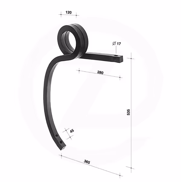 Dent cultivateur carrée 30x30x535mm Gauche Adaptable