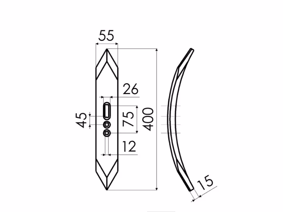 - Entraxe : 45 / 75 mm