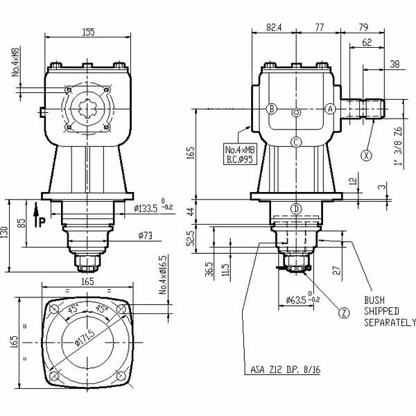 Axe d'entrée: 1'' 3/8, 6 cannelures