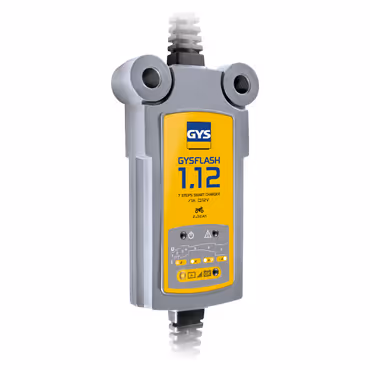 Le GYSFLASH 1.12 est spécialement conçu pour la recharge des batteries moto, jet-ski, karting et tondeuse.